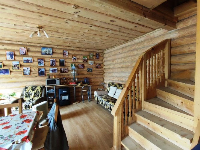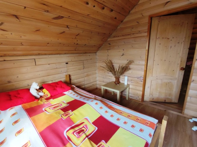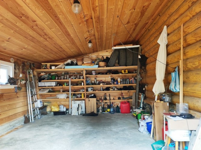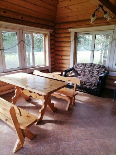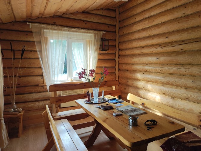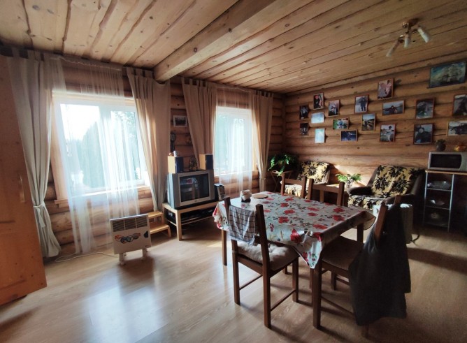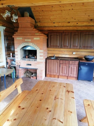 Есть бревенчатая БЕСЕДКА для отдыха с окнами и ставнями с барбекю (печь-камин), где можно принимать гостей и проживать в летнее время.