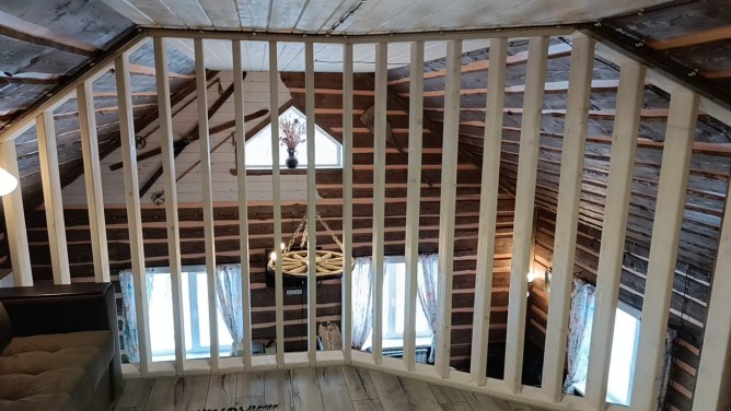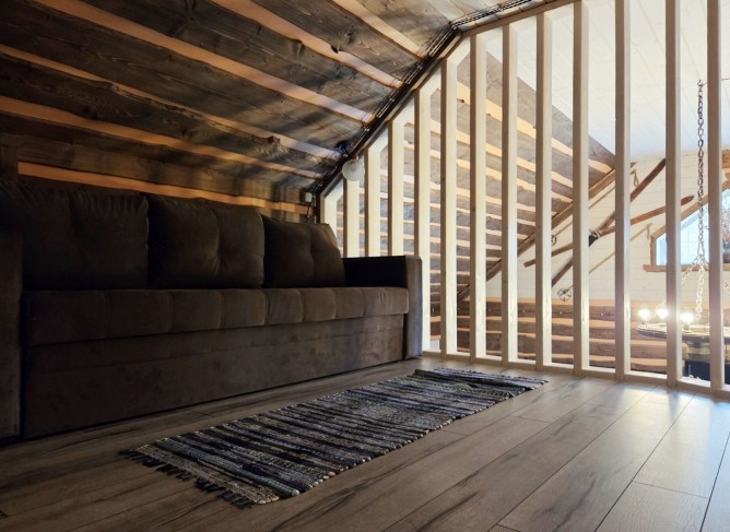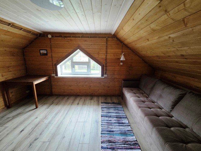 ПЛАНИРОВКА: в доме большой холл 46 м2 совмещенный с кухней, две спальни 8,4 и 7,5 м2, два санузла, прихожая, застекленная веранда 10 м2, в мансардном этаже большая жилая комната. Второй свет, двухуровневое пространство, что делает дом светлым и с хорошим обзором.