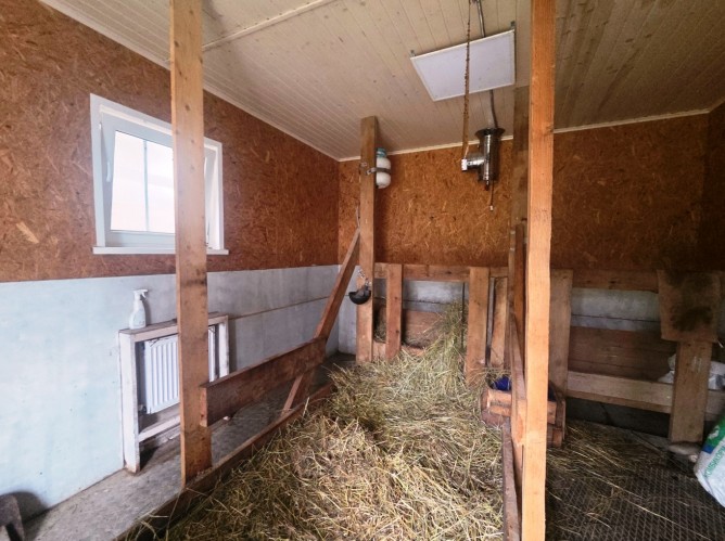 4. ДОМ для животных 95 м2 (5х16) с навесом 22 м2. Вы получаете готовое подсобное хозяйство с обитателями (возможна покупка без них). Сейчас содержатся корова редкой молочной породы Джерси, породистые куры и перепела. Есть инкубатор и оборудование для сыроварения и приготовления молочных продуктов. Выполнено разделение на хозяйственный двор с загонами для прогулок и жилой сектор для сна/отдыха животных и птиц, летние и зимние клетки.