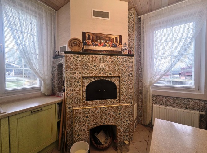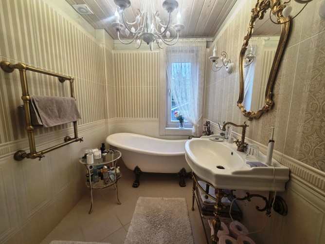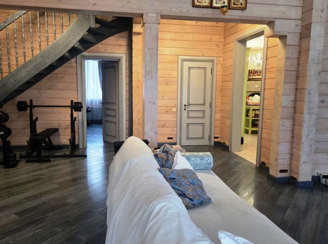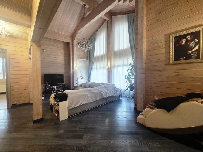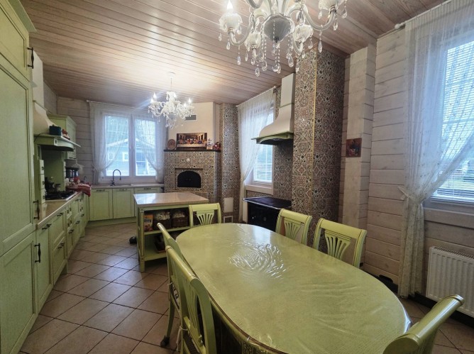 1. Жилой ДОМ площадью 255 м2 (12х16) с мансардным этажом, что позволило реализовать технологию второго света. Несколько технических подвалов. Мебель массив дерева. Деревянные стеклопакеты. Теплый пол на 1 этаже. Два входа: парадный и в сад на веранду с видом на Медведицу. ПЛАНИРОВКА: веранда, терраса, четыре спальни, роскошный холл с печью-камином, кухня-столовая с еще одной печью и немецким духовым шкафом (обе печи с изразцами), два санузла (на 1 этаже с душевой кабиной, на 2 этаже с ванной).
