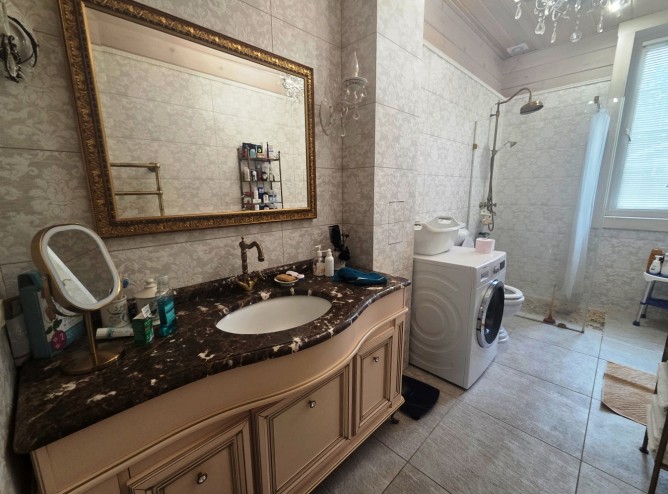 3. Три ГАРАЖА с хозяйственными помещениями: для двух автомашин, для катера и для малогабаритной техники. Автоматические ворота. В основном большом гараже площадью 164 м2 оборудовано подвальное помещение, обложенное кафелем, в котором размещены погреб, холодильники, полки для продовольственных запасов и заготовок. Высота потолка 2,8 метра. Погреб можно использовать для временного проживания в качестве укрытия на время неблагоприятных ситуаций.