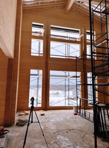 ПРОДАЕТСЯ жилой комплекс загородных зданий общей площадью 637 м2 под отделку. Фундамент монолитная плита на ростверковых сваях. Построен из элитного клееного бруса 220х280. Кровля цементно-песчаная черепица. Перекрытия утеплены минеральной ватой.