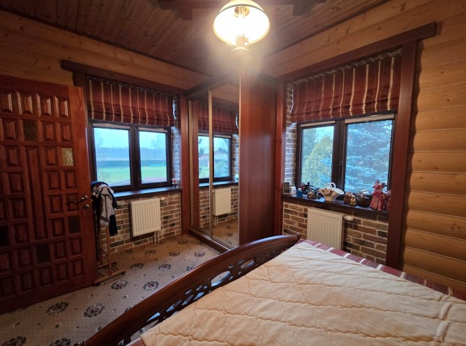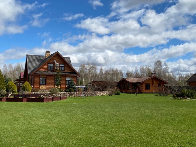 3. 2-этажный ГАРАЖ 142 м2 из пеноблоков с отделкой блокхаусом. Год постройки 2011. 1 этаж: два больших машиноместа; 2 этаж жилой: 3 спальни, кухня-столовая, санузел. Возможно круглогодичное проживание.