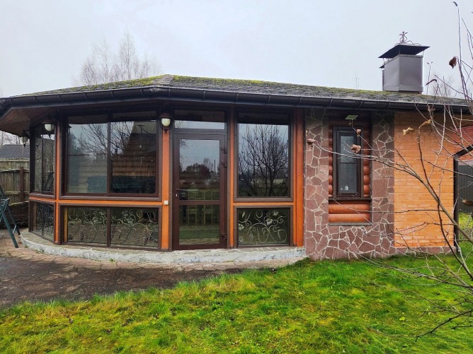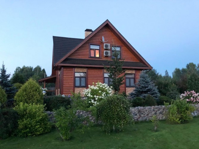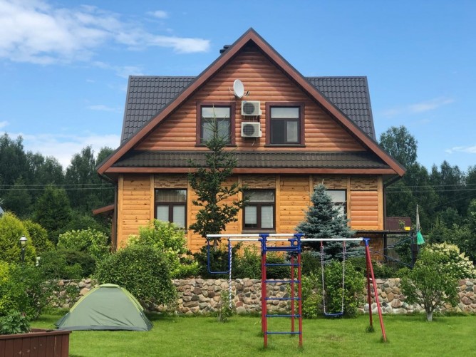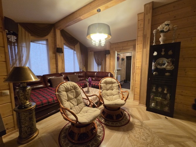 1. 2-этажный жилой ДОМ 150 м2 из пеноблоков с отделкой блокхаусом. Год постройки 2010. Полностью меблирован итальянской мебелью. С кондиционерами. Теплый кафельный пол. Два санузла. Подвал с отдельным входом.