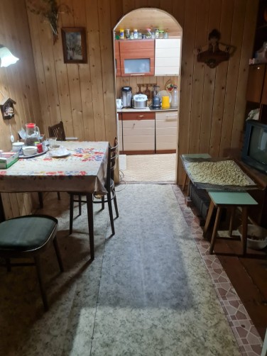 Планировка: две жилых комнаты общей площадью 30 м2; кухня 6 м2; столовая 12 м2; веранда 8 м2, санузел, большой погреб для хранения продуктов и инвентаря.