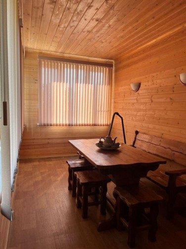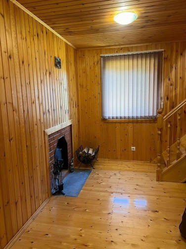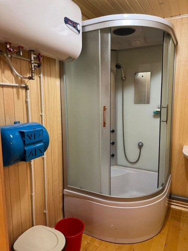 - БАНЯ 2-этажная площадью 50 м2. Парная, душевая, комната отдыха на 2-ом этаже. Материал стен брус 150х150. Снаружи обшита сайдингом, внутри евровагонкой. В бане есть водопровод и отопление (электроконвекторы).