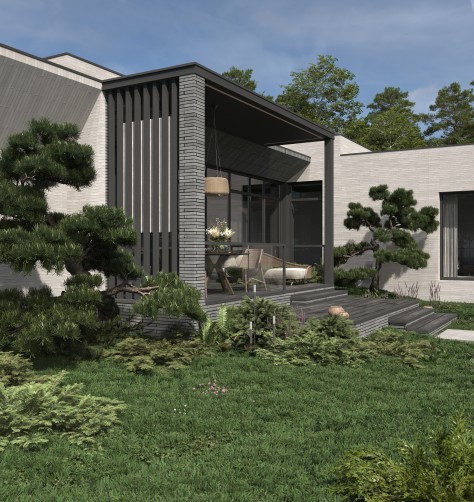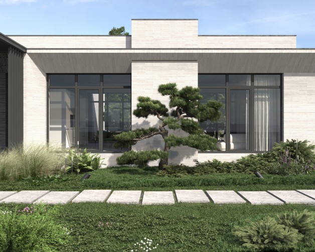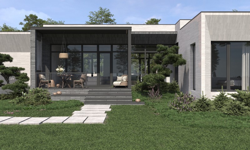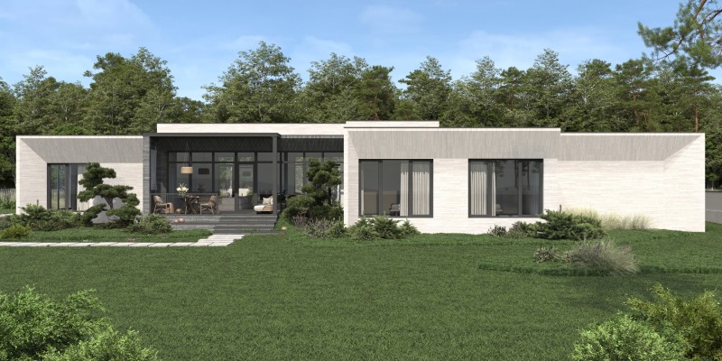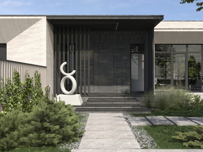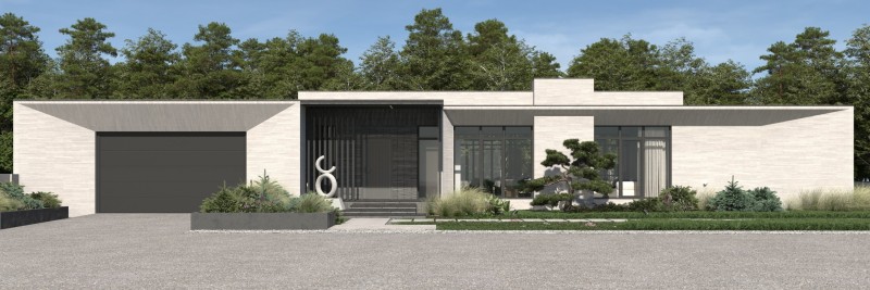 Дом с лаконичным дизайном, где четкие линии и простые формы гармонично вписываются в природный ландшафт. Панорамные окна размывают границы между интерьером и природой, наполняя дом светом и свежестью. Просторная планировка предусматривает всё необходимое для комфортной жизни семьи, включая места для отдыха и общения. Использованные материалы отличаются долговечностью и экологичностью, что делает дом не только стильным, но и практичным. Архитектурное решение подчёркивает актуальные тренды минимализма, создавая идеальное пространство, для тех, кто ценит гармонию природы и современный дизайн.