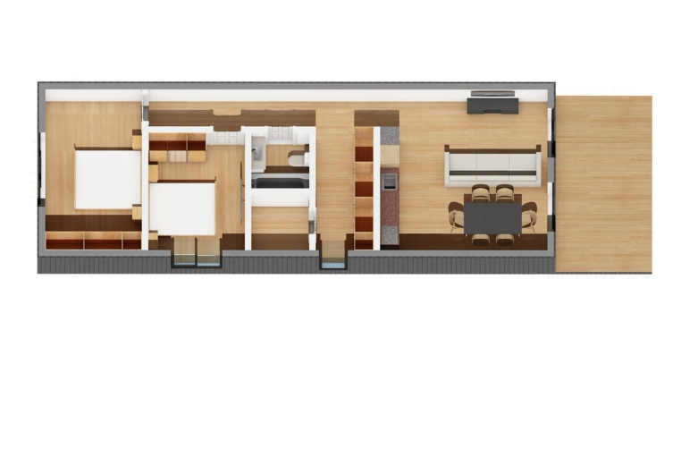 · Теплый пол повсюду: Равномерное и комфортное тепло по всему дому обеспечивают водяные теплые полы, встроенные в стяжку.